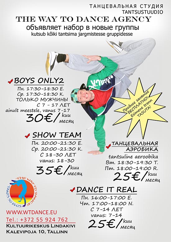 Открытый урок с 16:00 в понедельник 16 сентября, зал №52, Kalevipoja 10.